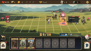 - Turn-based strategic battles that combine auto-battler and card combat.